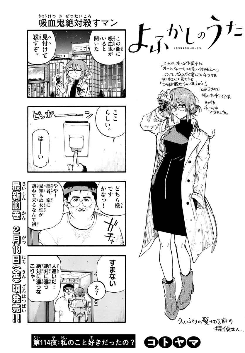 Tags: read manga Yofukashi no Uta Chapter 114, comic Yofukashi no Uta Chapter 114, read Yofukashi no Uta Chapter 114 online, Yofukashi no Uta Chapter 114 chapter, Yofukashi no Uta Chapter 114 chapter, Yofukashi no Uta Chapter 114 high quality, Yofukashi no Uta Chapter 114 manga scan.